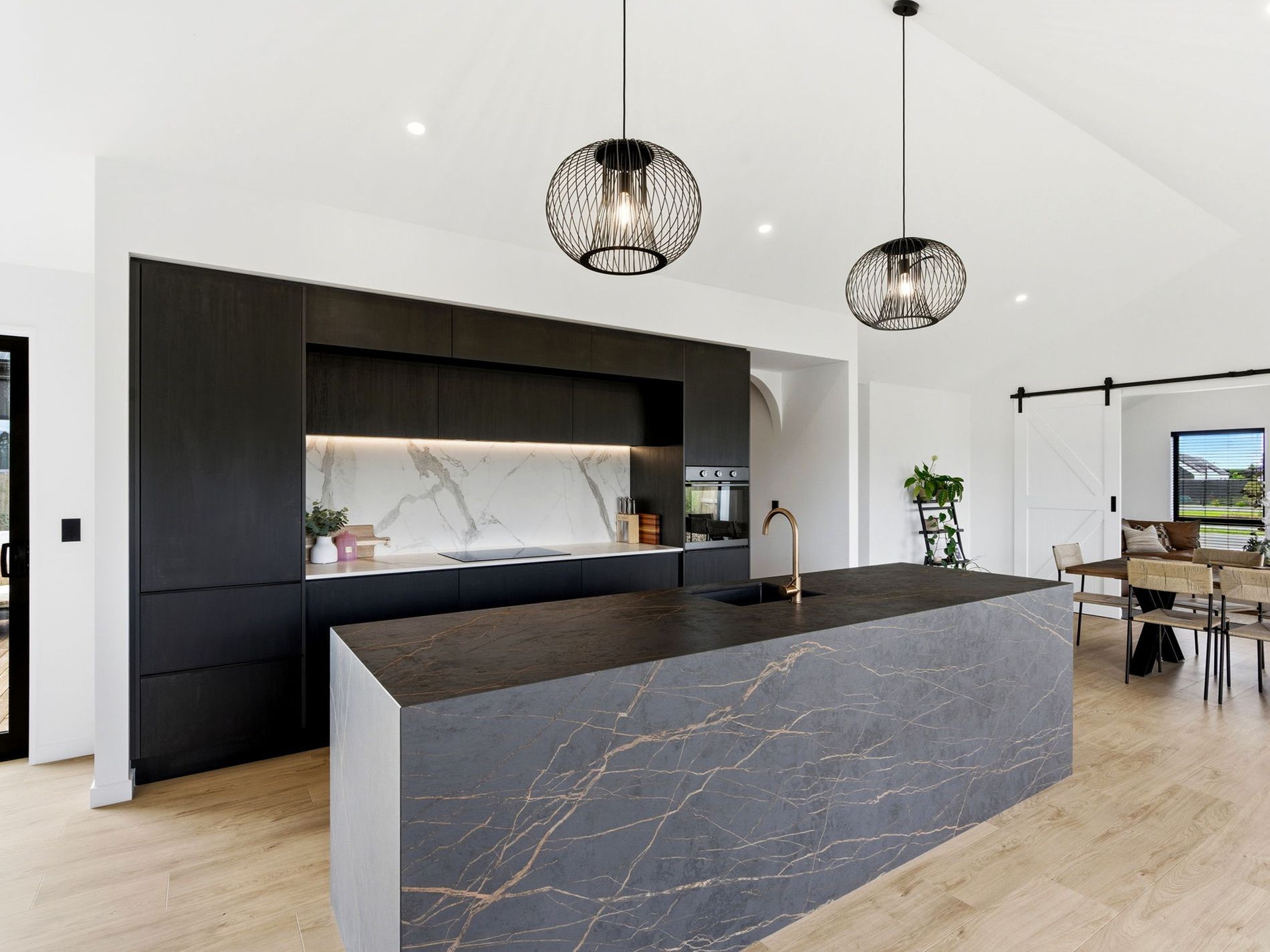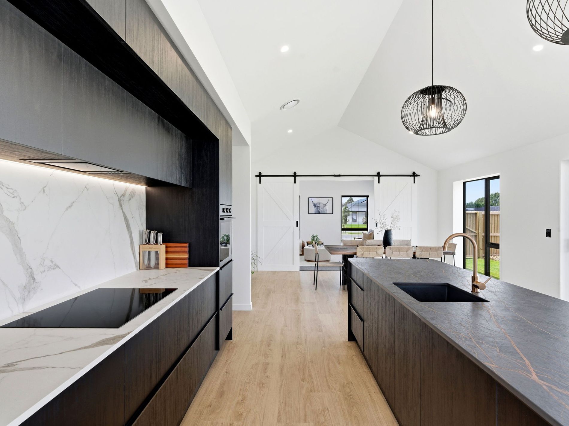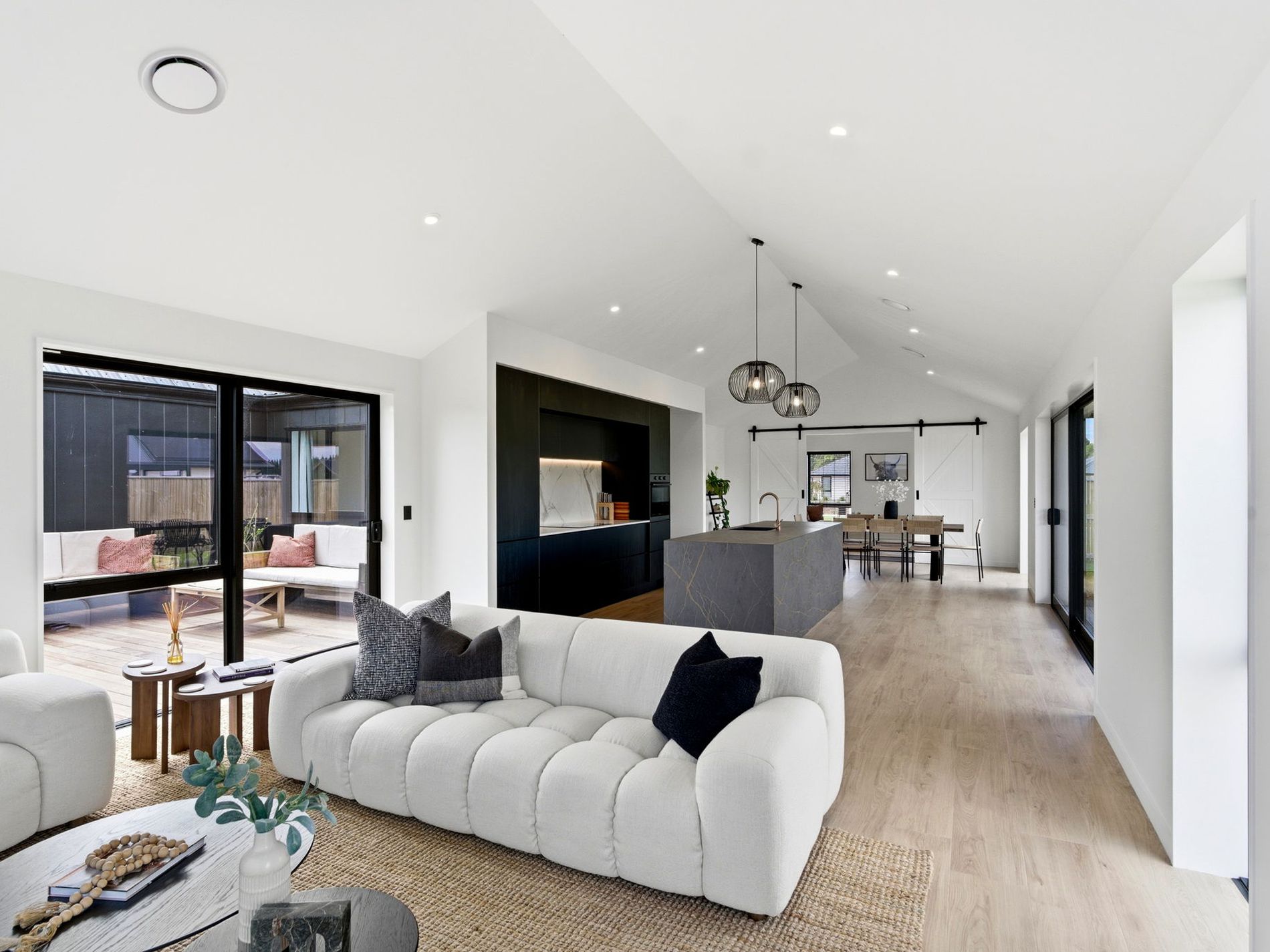 From the moment you enter, clean architectural lines and soaring cathedral ceilings create an immediate sense of volume and understated luxury. Warm natural timber tones feature throughout, adding depth, texture, and calm to the contemporary aesthetic. Expansive glazing floods the interiors with natural light, enhancing the seamless connection between indoors and out.